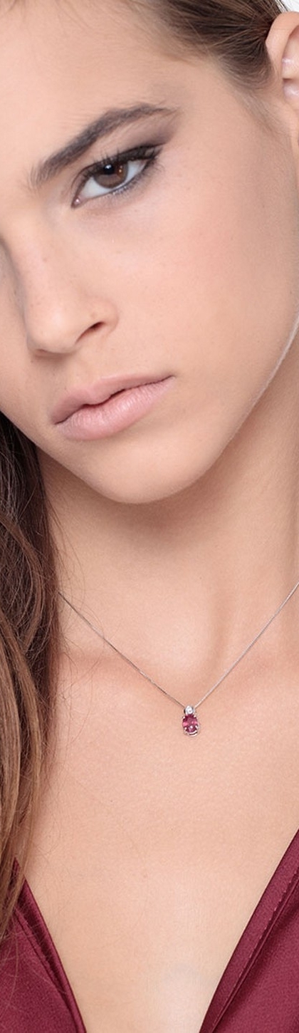 Damenkette aus Weißgold mit Rubin-Anhänger und Brillanten