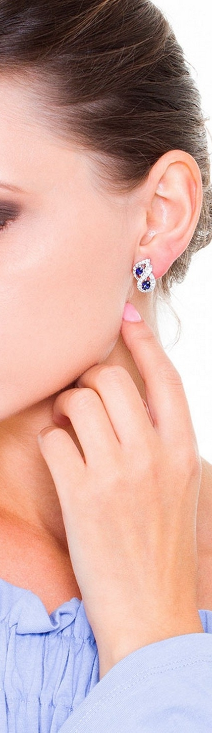 Weißgold Ohrringe mit Diamanten und 2 Saphiren