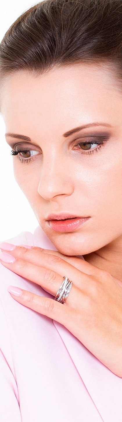 Geflochtener Damenring aus Weißgold mit Diamanten