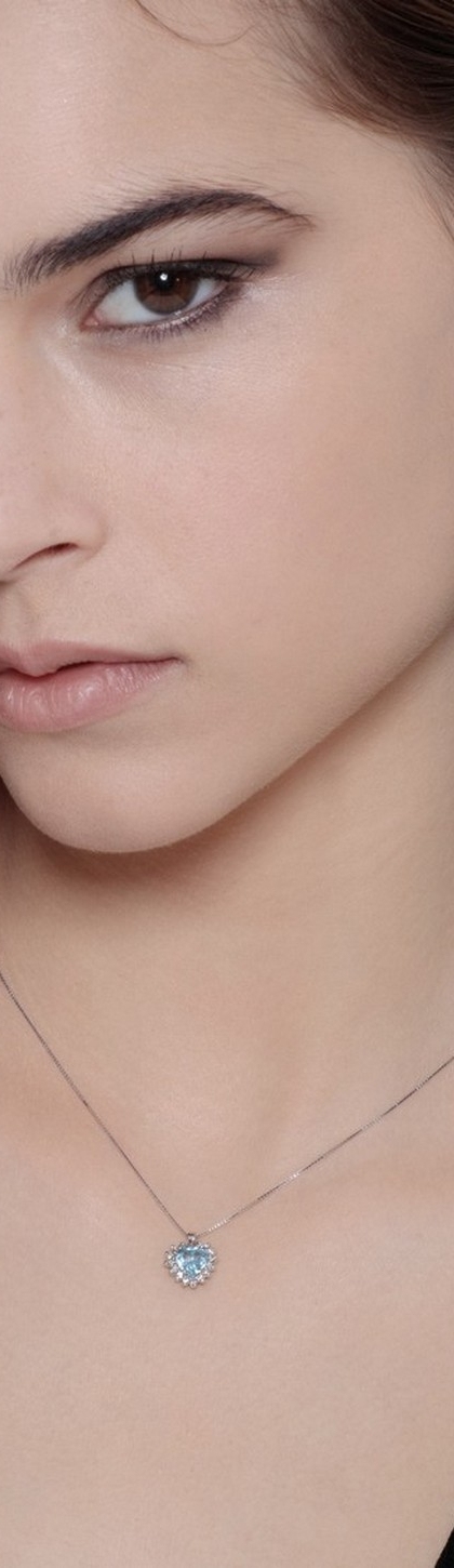 Weißgold Kette mit Aquamarin Herz Anhänger und Diamanten
