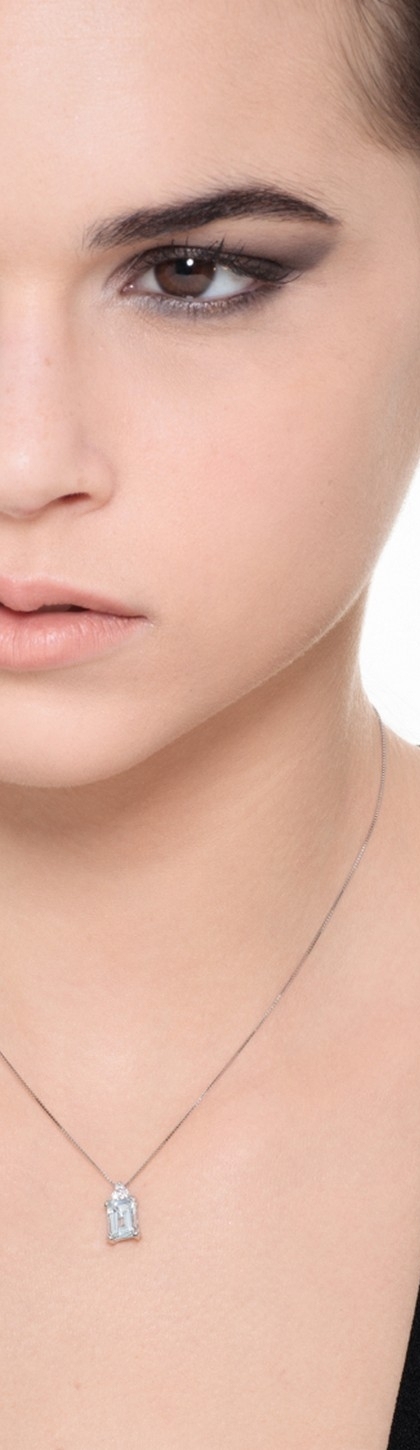 Halskette aus 750er Weißgold mit Aquamarin und Diamanten